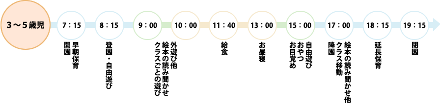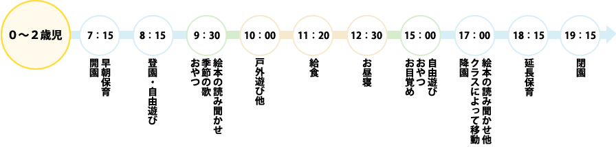 保育園での毎日の生活7:15~18:15について(18:15~19:15 延長保育) ※短時間契約の保育時間8:30~16:30(7:15~8:30、16:30~19:15 延長保育)